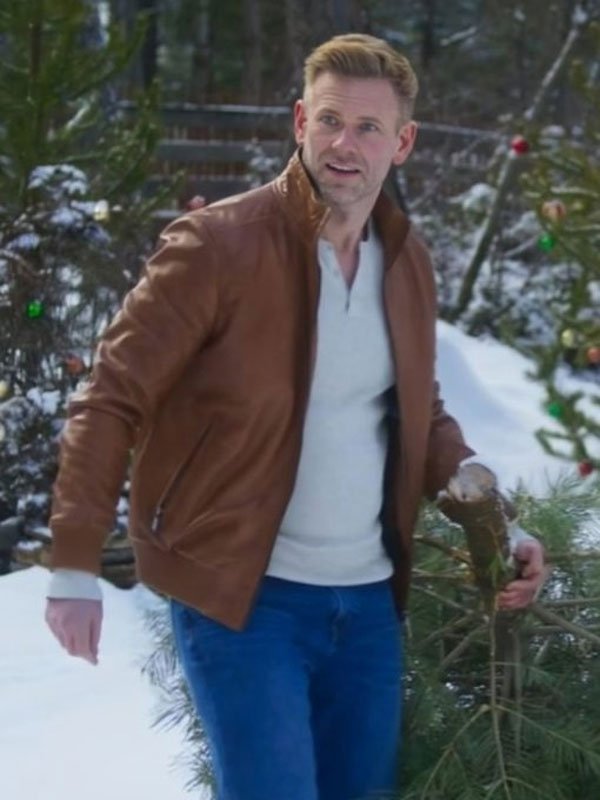 A Christmas Less Traveled Eric Johnson Brown Leather Jacket