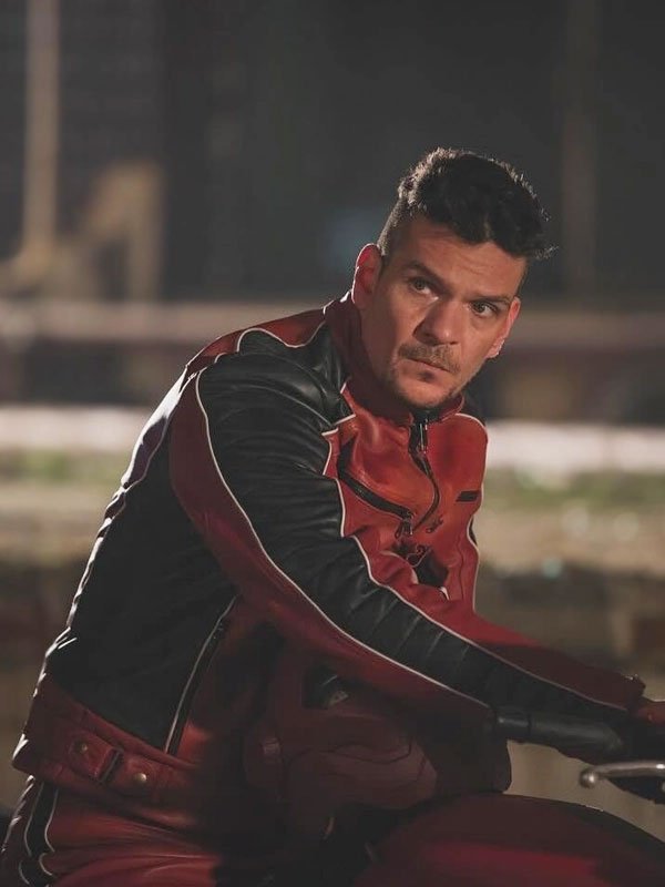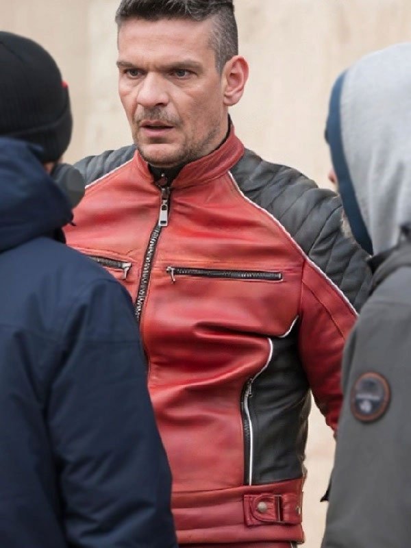 April X Tetris Red & Black Real Leather Zipper Jacket