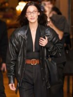 Bella Hadid Black Real Leather Jacket