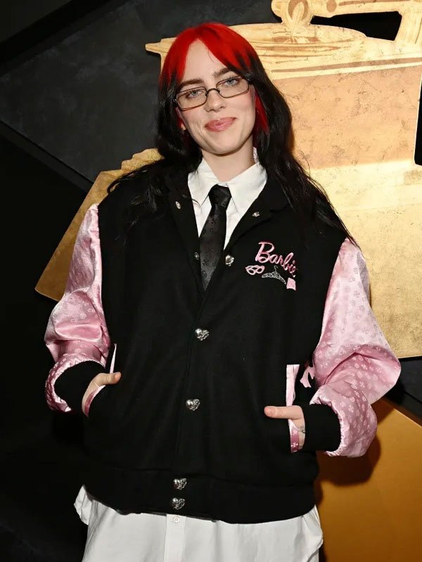 Billie Eilish Barbie Bomber Black & Pink Wool Jacket