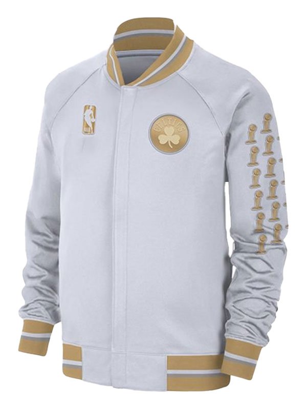 Boston Celtics Trophy Ring Banner White Wool Jacket
