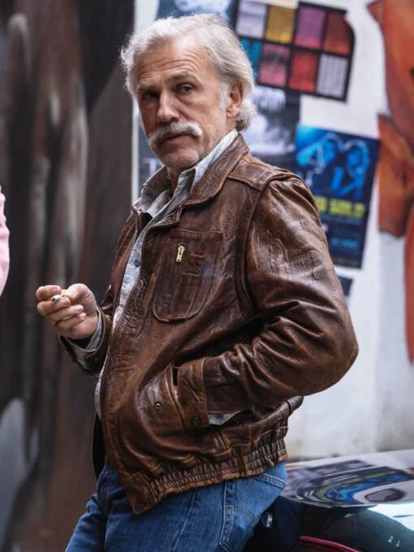 Christoph Waltz Old Guy Brown Leather Jacket