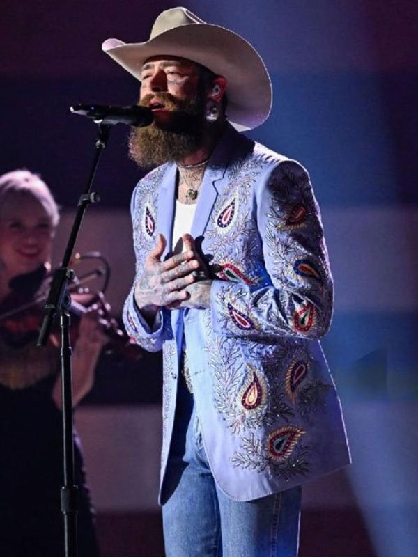 CMA Awards Post Malone Blue Suiting Embroidered Blazer