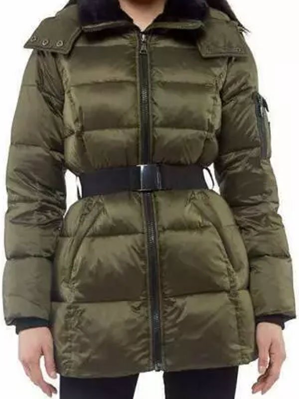 Costco Vince Camuto Belted Puffer Black & Green Jacket