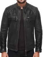 5 reviews for David Quilted Shoulder Distressed Black Real Leather Jacket