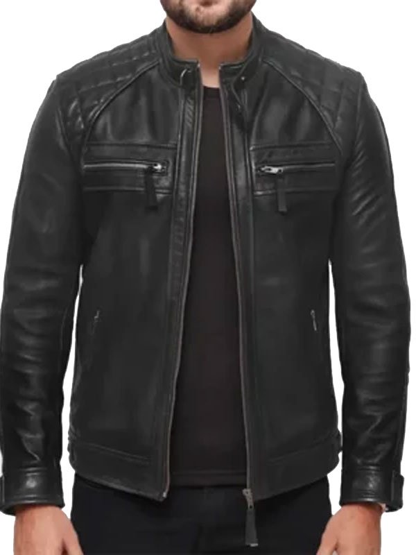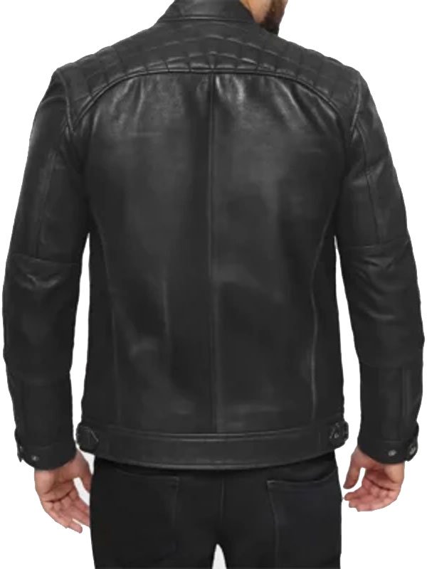 David Quilted Shoulder Distressed Black Real Leather Jacket