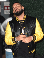 Drake Los Angeles Black Leather Varsity Jacket