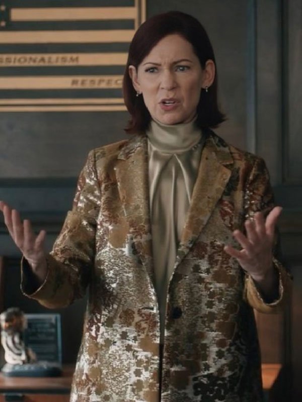 Elsbeth S02 Carrie Preston Jacquard Quality Trench Coat