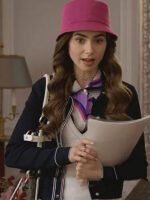 Emily In Paris Lily Collins Navy Blue Cotton Jacket