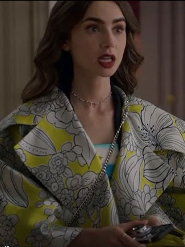 Emily in Paris Lily Collins Yellow Floral Jacket