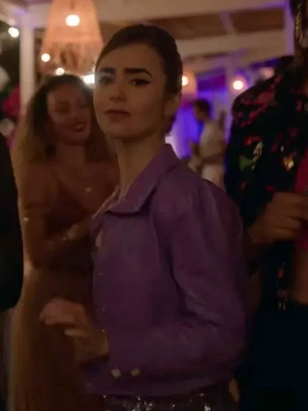 Emily in Paris S02 Emily Cooper Purple Leather Jacket