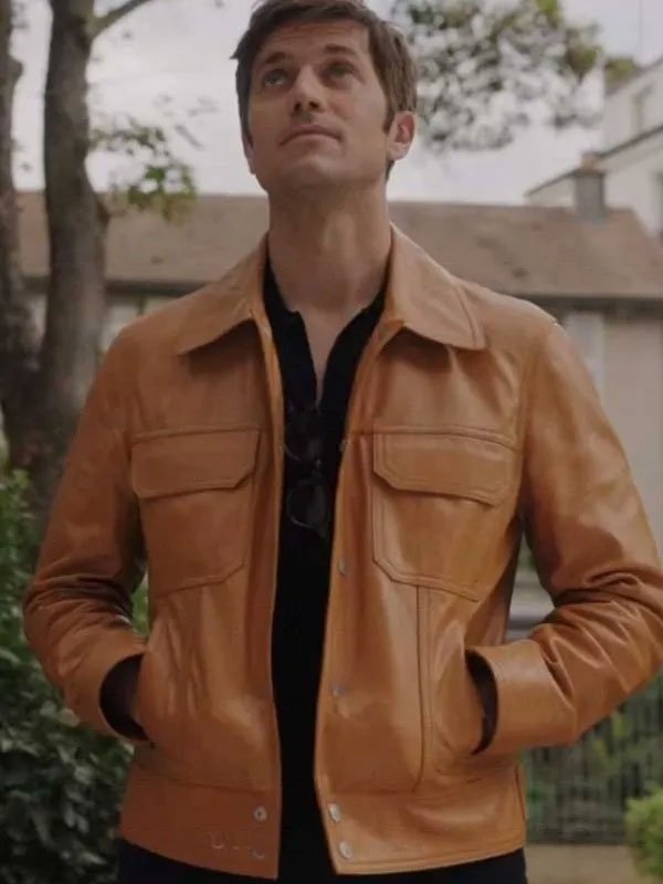 Emily in Paris S03 Gabriel Tan Brown Leather Jacket