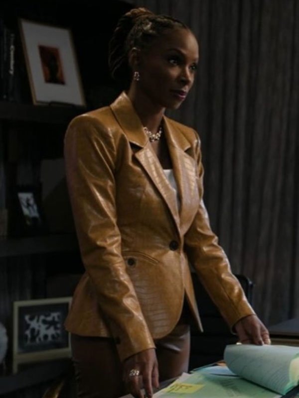 Found Season 2 Shanola Hampton Brown Faux Leather Blazer