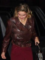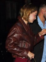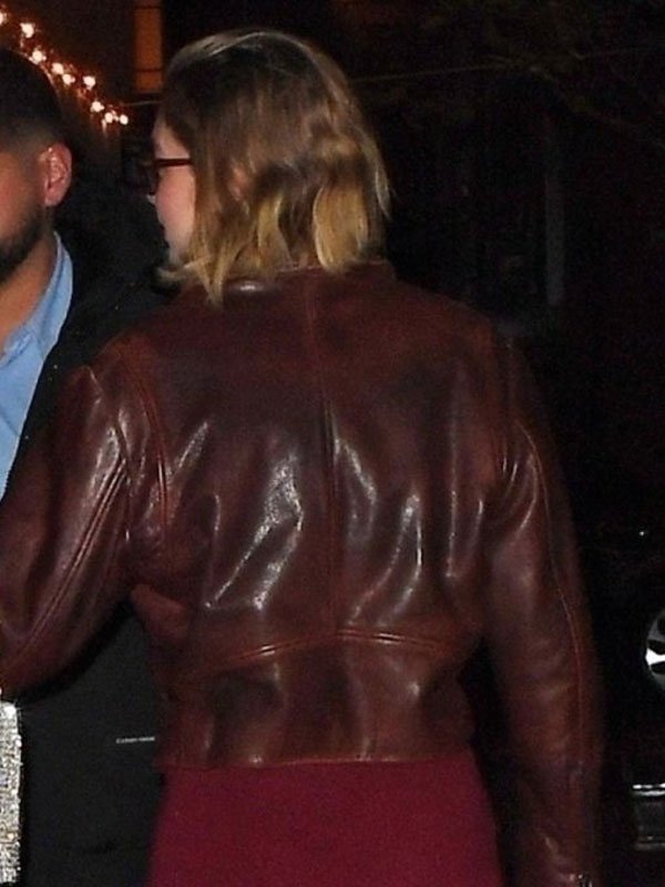 Gigi Hadid NYC Girls Night Out Brown Real Leather Jacket