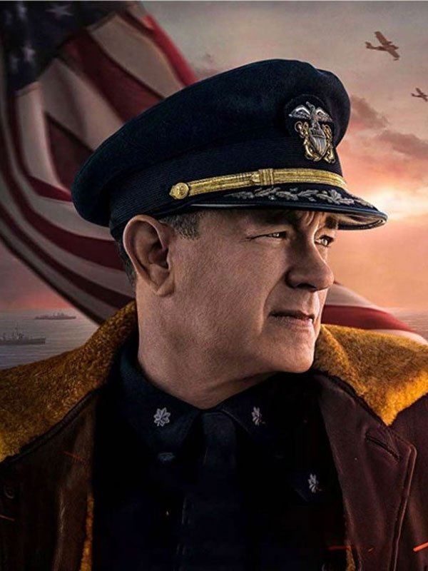 Greyhound Tom Hanks Fur Collar Black leather Jacket