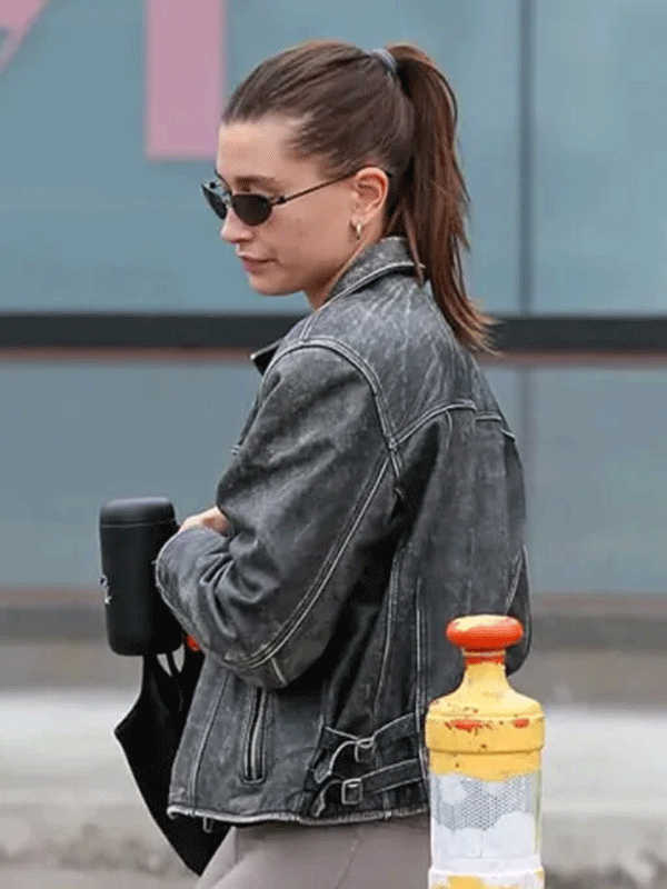Hailey Bieber Distressed Black Distressed Leather Jacket