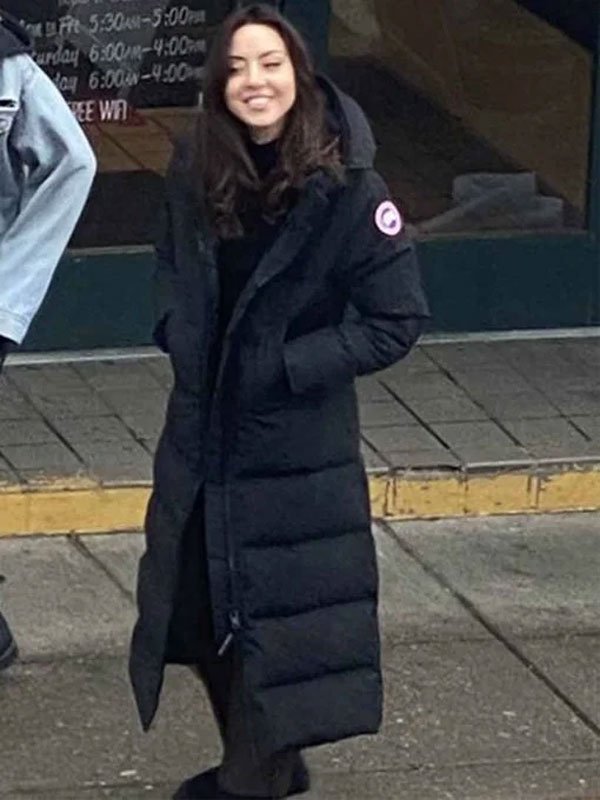 Happiest Season Aubrey Plaza Black Hooded Coat