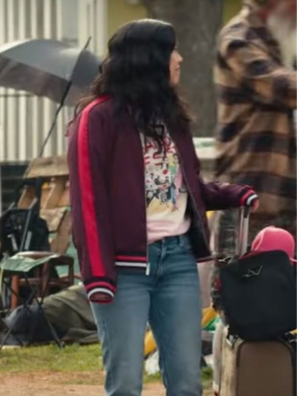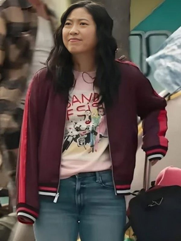 Jackpot Awkwafina Maroon Bomber Fleece Jacket