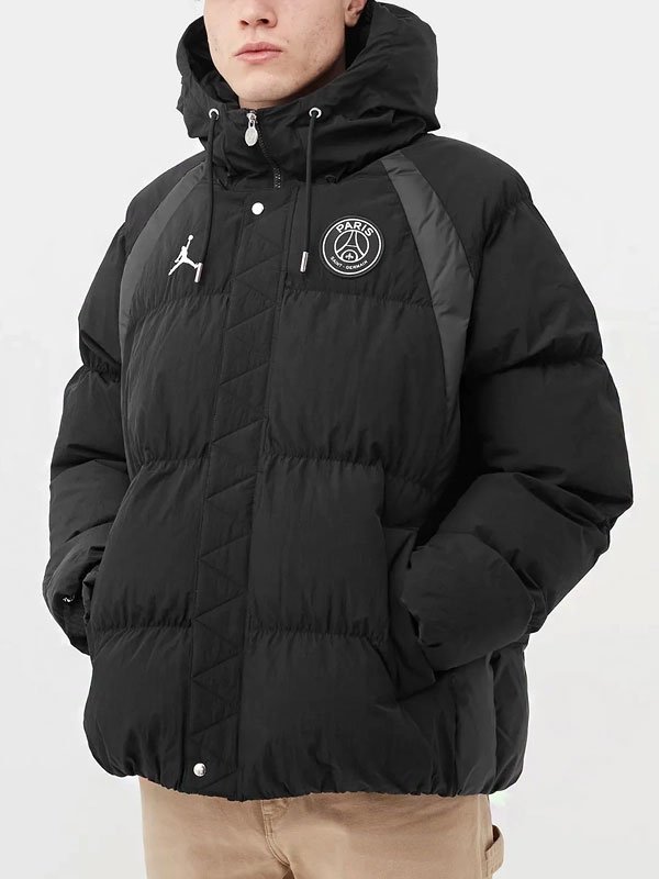 Jordan x Paris Saint Germain Black Puffer Hoodie Jacket