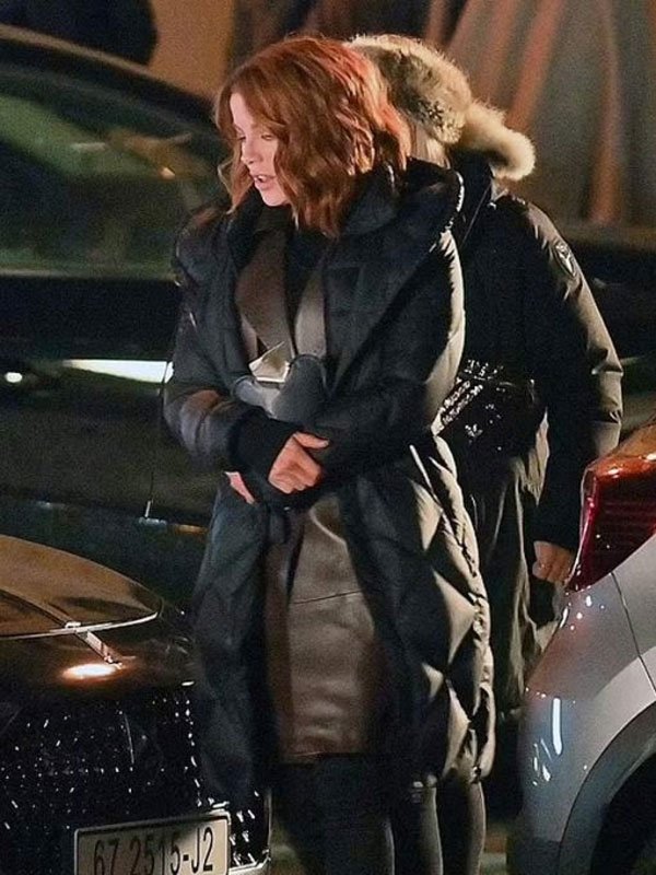 Kate Beckinsale Canary Black Parachute Hooded Coat