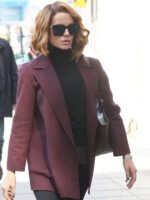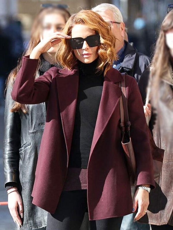 Kate Beckinsale Canary Wool Maroon Open Coat