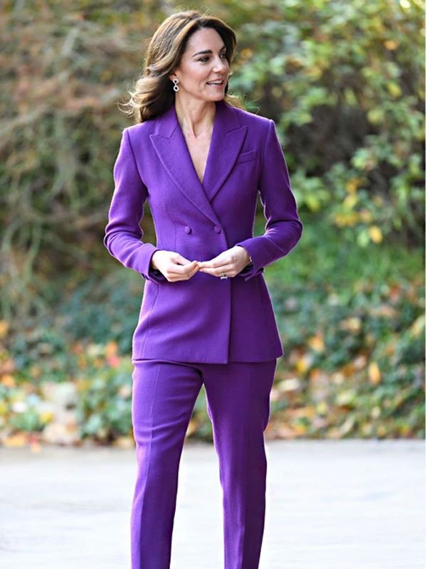 This purple suit has a lovely color: deep, brilliant, a wonderful color for any occasion. Recommend it strongly.