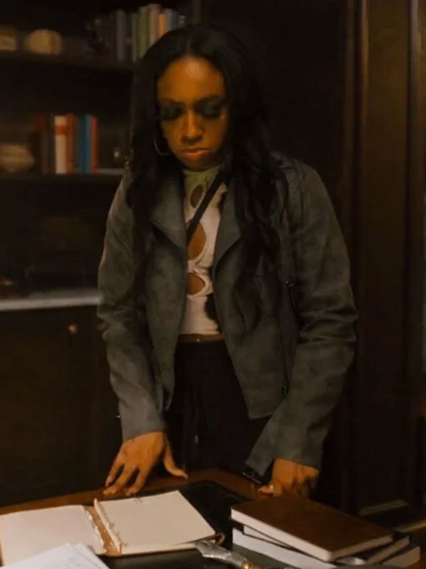 Kimmie Beauty in Black S01 Grey Real Leather Jacket