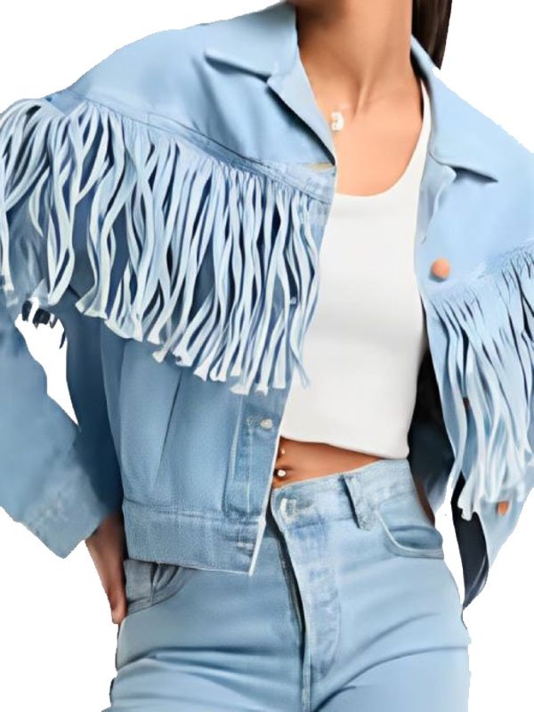 Landman Michelle Randolph Blue Denim Fringe Jacket
