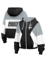 Miss not this stylish piece of the Las Vegas Raiders Andrews Hooded Jacket collection. This is not your ordinary jacket, as it’s a way to express your allegiance to one of the most sensational teams in the league. Get your Vegas Raiders Erin Andrews Hooded Jacket now and wear it proudly!