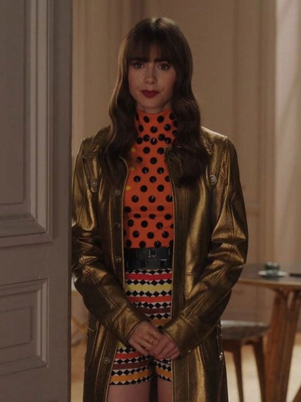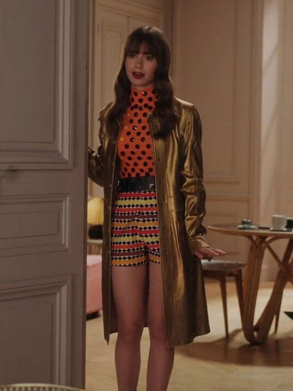 Lily Collins Emily in Paris S03 Golden Leather Coat