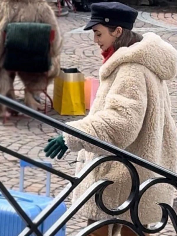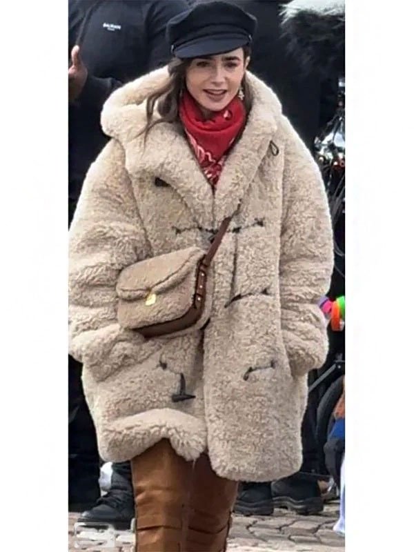 Lily Collins Emily In Paris S04 Shearling Coat