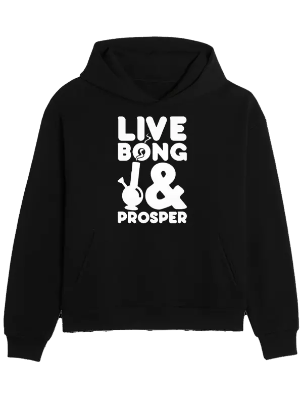 Be the first to review “Live Bong & Prosper Black Pullover Hoodie” Cancel reply