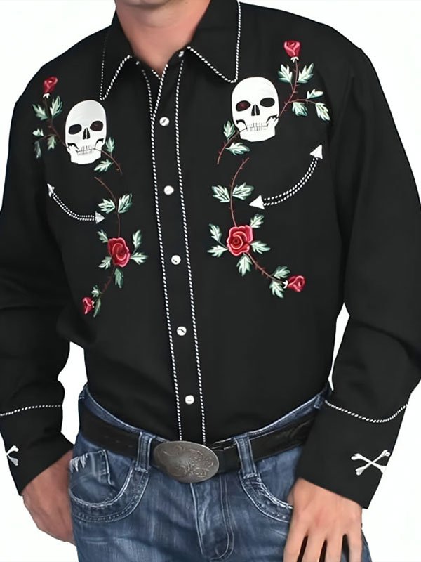 Mr McMahon S01 Jimmy Skull And Roses Black Cotton Shirt