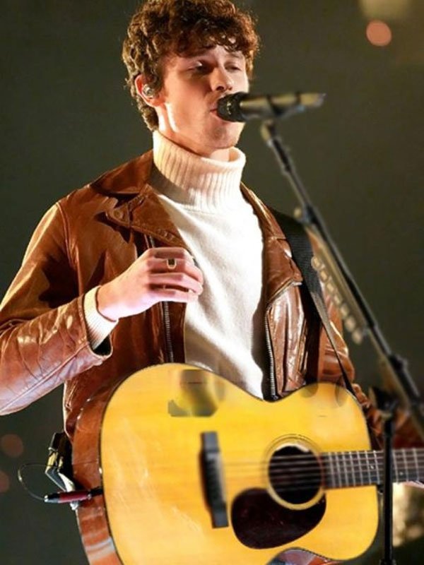 MTV EMAs Shawn Mendes Brown Real Leather Jacket