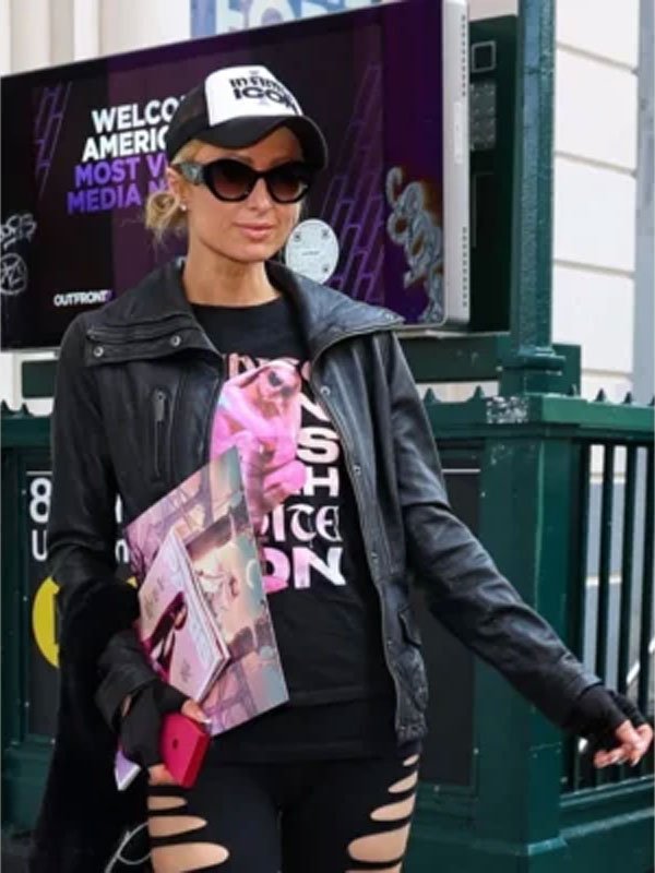 Paris Hilton Infinite Icon Black Real Leather Jacket
