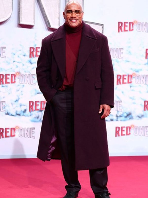 Red One Premiere Dwayne Johnson Wool Maroon Coat