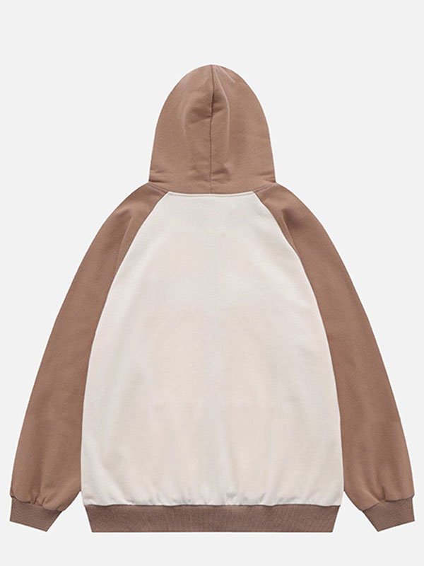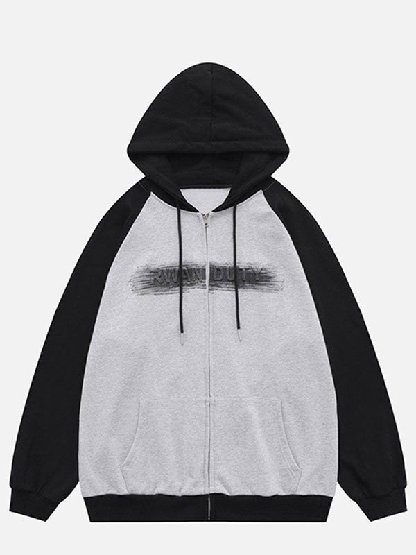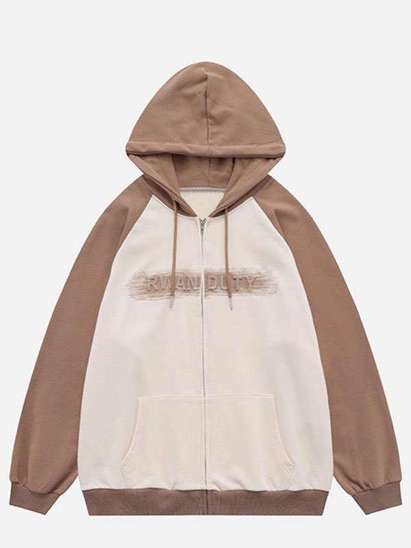 Rwan Duty Letters Print Zipper Fleece Hoodie