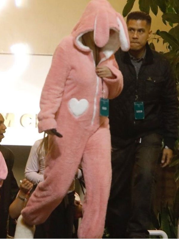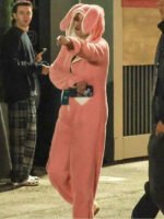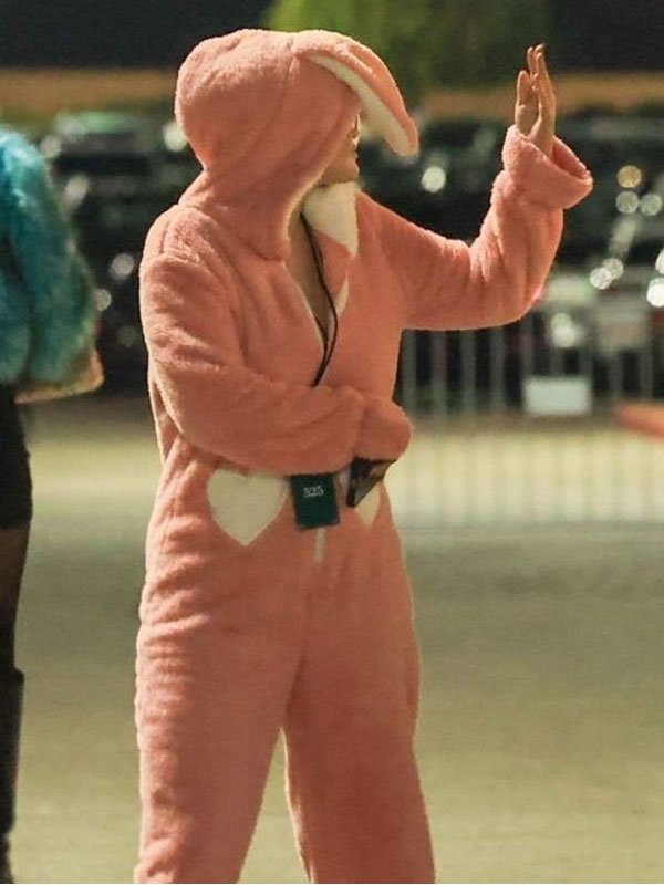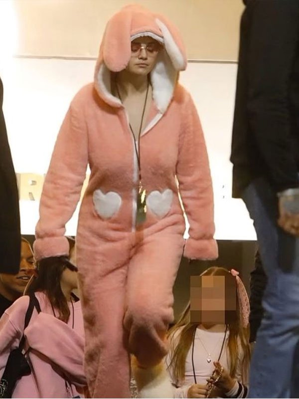 Selena Gomez Bunny Pink Faux Fur Hooded Onesie