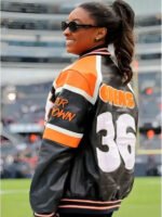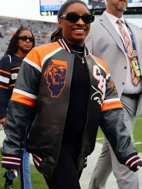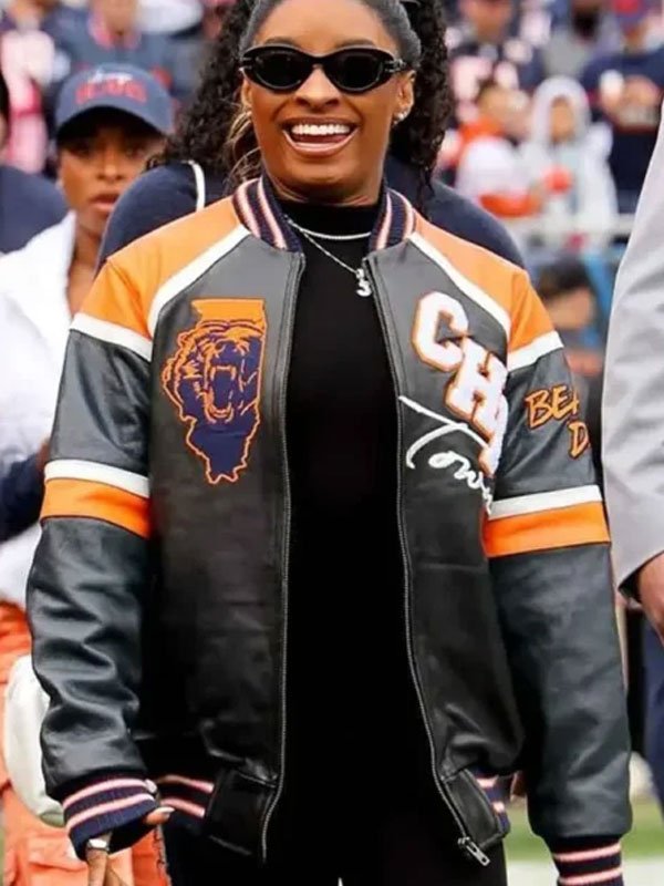 Simone Biles Chicago Bears Black Leather Varsity Jacket