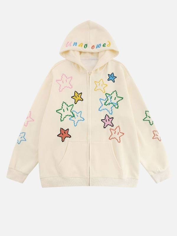Star World Streetwear Graphic Fleece Black & Cream Hoodie