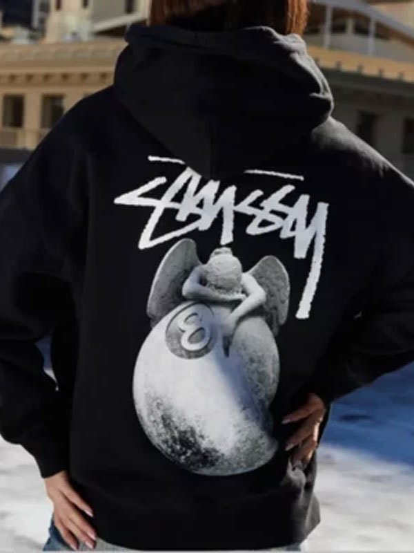 Time to own the streets with the Oversized Stussy Angel Black Hoodie!