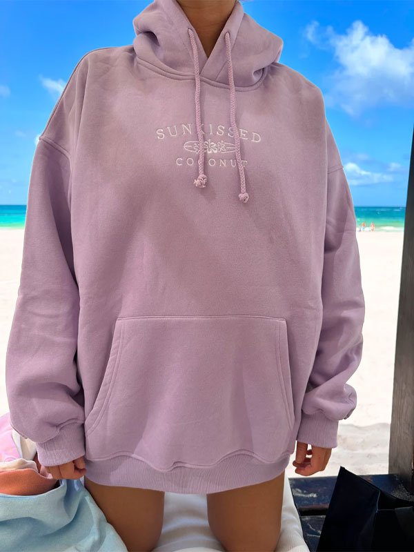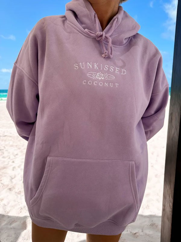 Sunkissed coconut Embroider Purple Pullover Hoodie