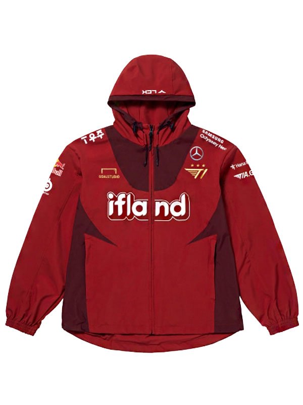 T1 Uniform Worlds Red Polyester Hooded Jacket