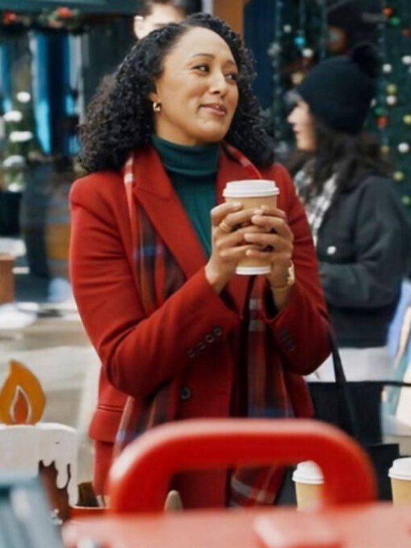 Tamera Mowry-Housley Christmas Red Wool Coat