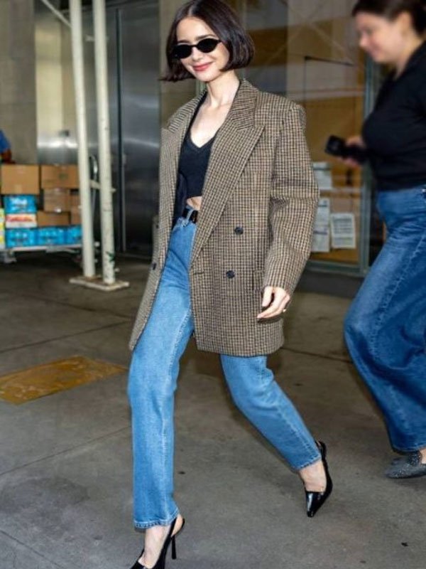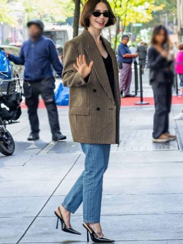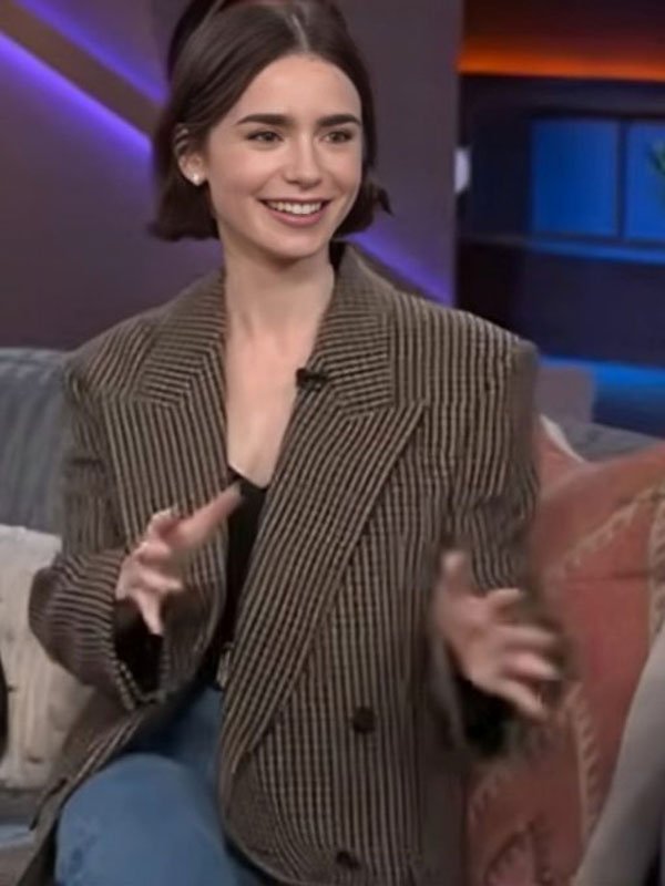 The Kelly Clarkson Show Lily Collins Brown Wool Blazer