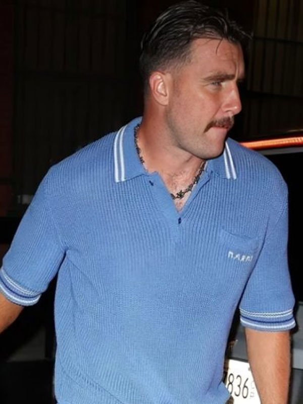 Travis Kelce NYC Dinner Date Crochet Blue Knitted Shirt