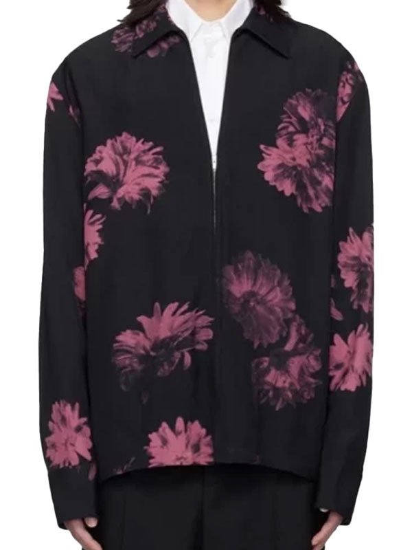Travis Kelce Pink Flower Printed Full Zipper Blue Jacket