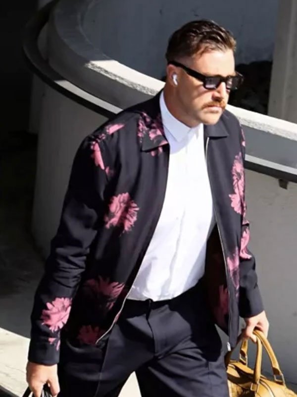 16 reviews for Travis Kelce Pink Flower Printed Full Zipper Blue Jacket