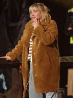 We Live in Time Florence Pugh Brown Shearling Trench Coat