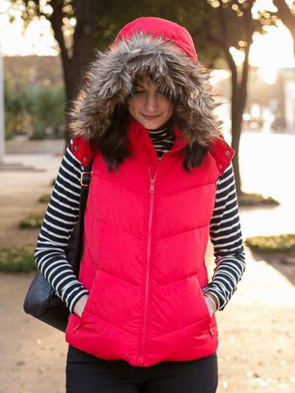 Womens Parachute Vest With Pink Fur Hooded Jacket